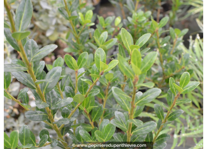Ce "Houx japonais" possède un feuillage remarquable constitué de petites feuilles finement crénelées vert clair, curieusement très similaires à celles du buis commun. Avec ses rameaux fins et son feuillage dense, il est bien adapté pour former une haie basse. Supportant bien la taille, cette variété est particulièrement recommandée pour l'art topiaire.