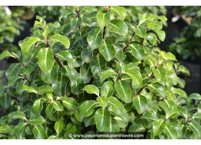 Avec son port dense, il formera un arbuste de taille moyenne qui atteindra jusqu'à 2 m de hauteur pour 1.50 m de largeur à l'âge adulte. Sa végétation dense et compacte offre un beau volume, charnu au jardin, intéressant pour la réalisation d’une haie décorative, contrastée par des rameaux bruns et feuilles claires.