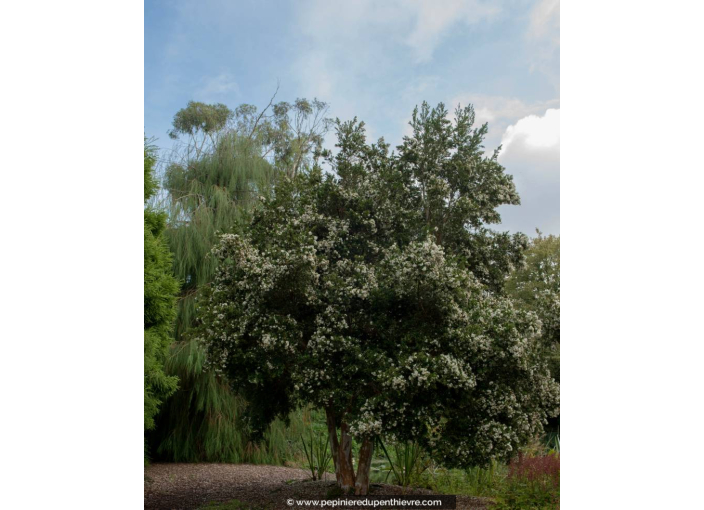 - Floraison généreuse, mellifère et parfumée : petites fleurs simples blanches, aux étamines saillantes