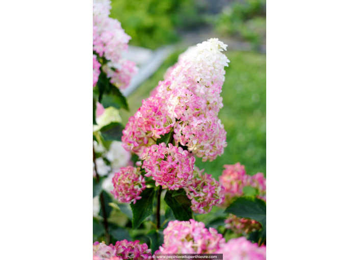 Sa floraison remarquable se produit dans le courant de l'été, parfois jusqu'à l'automne. Cet hortensia produit des grandes inflorescences coniques et bicolores, très originales : d'abord blanches, elles prennent de jolies teintes roses pour finir totalement rouge soutenu.