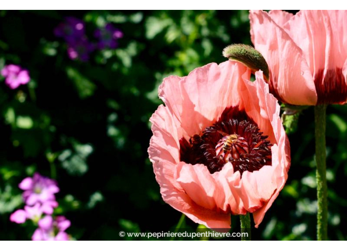 - Floraison remarquable : grandes fleurs rose saumon à macule noire de juin à juillet