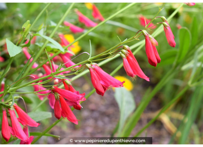 - Floraison remarquable : grandes fleurs tubulaires rouges de juillet à septembre